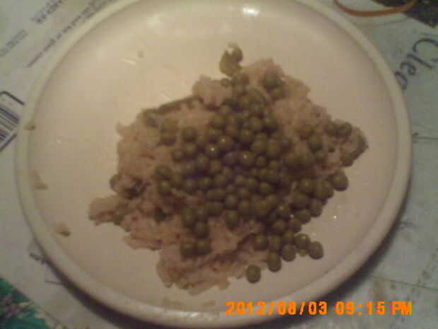 una buena porción de arroz y guisantes en un lugar de la cucharón.