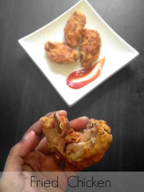 este es el mejor pollo frito que hecho... Es húmeda, tierna y crujiente. Unos pocos ingredientes se necesita para hacer este plato. He utilizado harina para la capa crujiente exterior. Puede sustituirla con pan rallado o copos de maíz machacados tamb