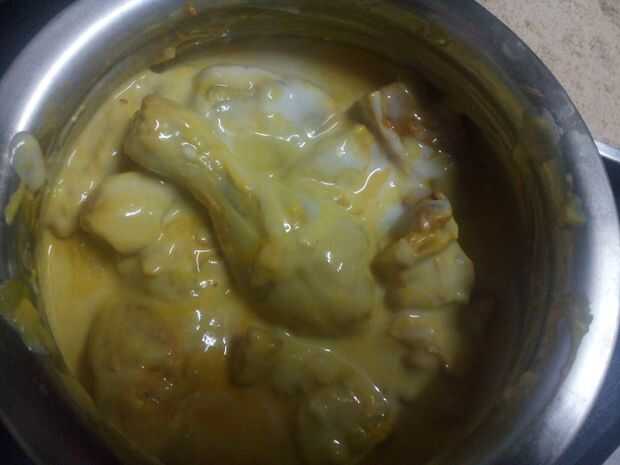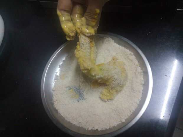 2. ahora mezclar esta pasta de harina de pollo marinado