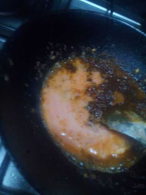 6. ahora mezclar el puré de tomate y cocinar a fuego lento durante diez minutos