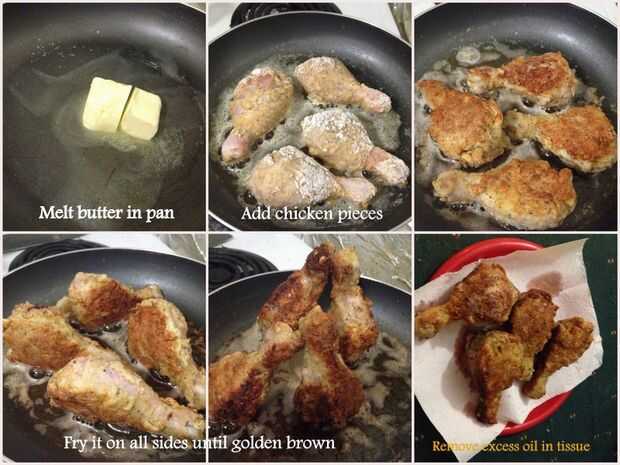 Nota: Mientras se fríe el pollo, cocer en fuego mediano o bien la capa externa quemar fácilmente antes de que el pollo Haz cocinado bien.