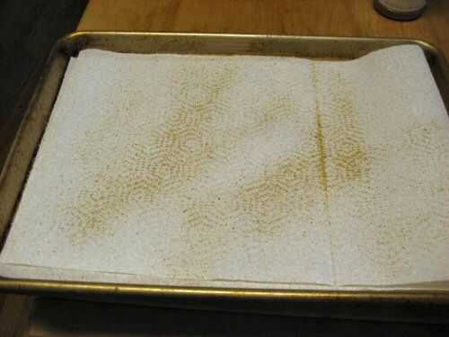 Cubrir las galletas con una capa doble de papel de cocina. Espolvorear sal sazonada en eso. A ser esto poniendo las piezas fritas, así que téngalo cerca de la estufa, así.