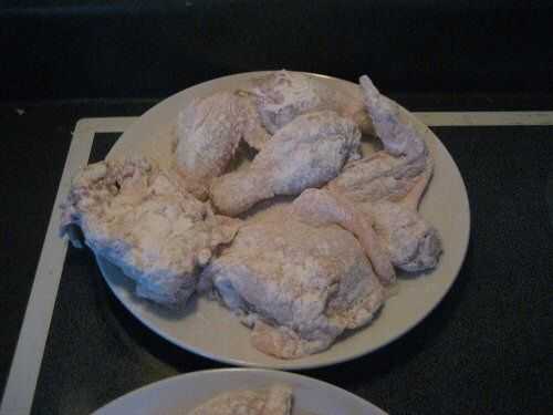 eso es correcto pollo "frito" en la parrilla. Saltar el aceite y lío y freír el pollo un verdadero placer.Lo que se necesita:6 muslos de pollo - en piel!HarinaSal de Chile JalapeñoRiley's todo propósito condimento (sin sal)Pimienta negraFrancos