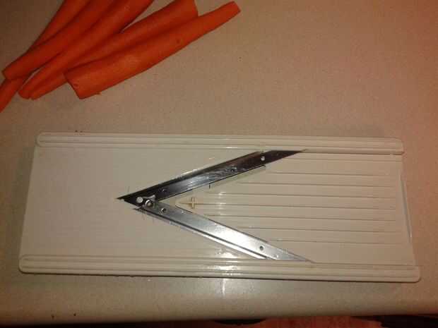 Rebanador mandolina - para hacer rodajas de zanahoria uniforme rápidamente. Uno de mis gadgets de cocina favorito, buscar excusas usar esta máquina de cortar.