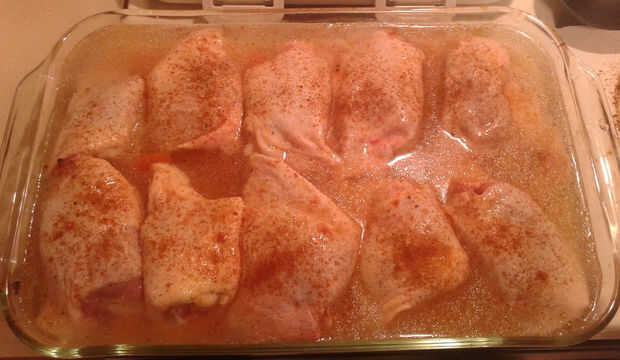 Sazona el pollo a gusto. Esta vez usé sal, pimienta y pimentón.