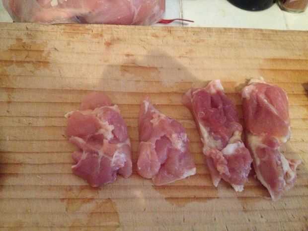 Si tu pollo es grueso, como sesgar el cuchillo un poco para cortar un poco más delgado. Si el grosor del pollo no es ni siquiera, algún pollo lleva más tiempo para cocinar. Así, es fácil si sigues aun y no demasiado gruesa.