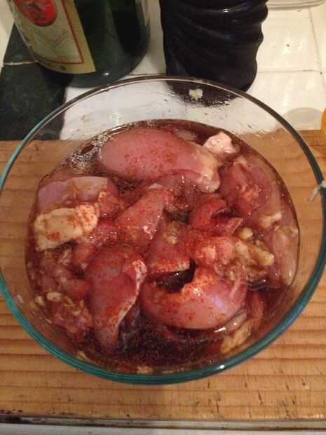 Ya estaba moler jengibre y el ajo en el contenedor que estoy marinado, simplemente puse pollo en el recipiente.