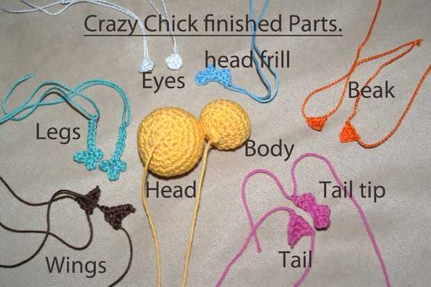 De la foto se pueden ver todas las piezas acabadas necesarias para hacer Crazy Chick.