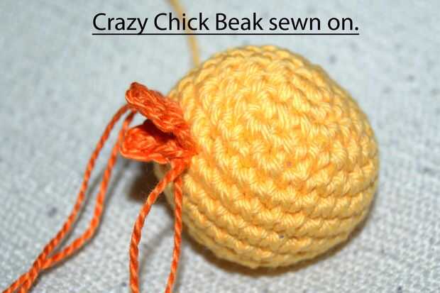 Comenzar por coser ambas piezas del pico a la cabeza como se muestra en la foto.  Luego ocultar los extremos dentro de la cabeza.