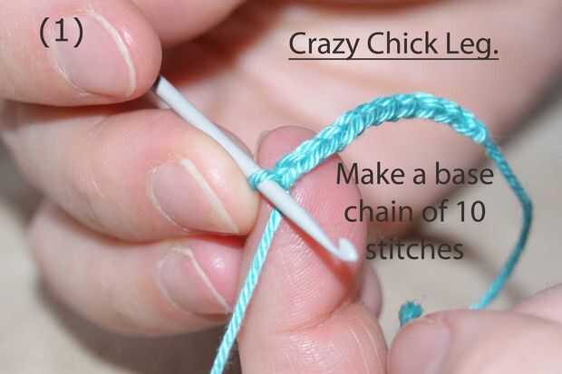 Comenzar con una cadena de base de 10 puntadas de cadena.  See foto (1)