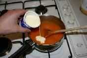 Agregue en 150ml de doble crema, calor a través del fondo y reservar.