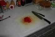Base de la semilla de los chiles y picarlos bien, como se muestra en la imagen