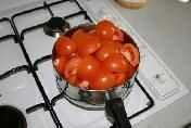 Freeze está haciendo su trabajo... cuarto los tomates y poner en una cacerola con nada. Caliente por 20 minutos en un bajo a fuego medio