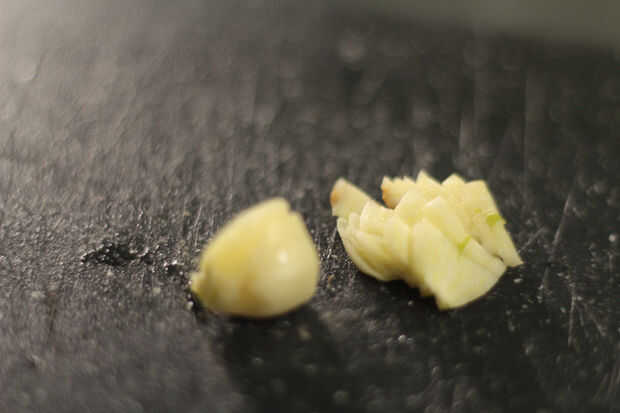 Tomar como un cuarto de un pequeño pedazo de ajo y picarla.
