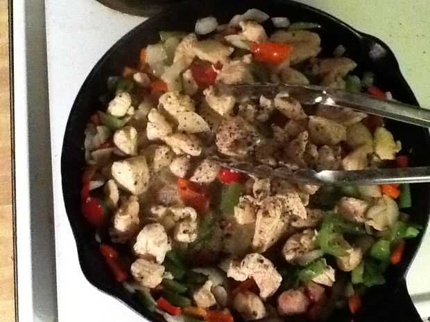 • Una vez que se cocinaron, he añadido el pollo y especias