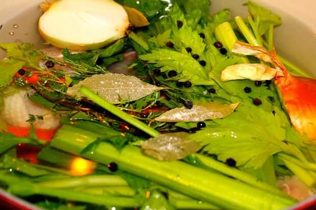 Cómo hacer caldo de pollo casero: receta de caldo de pollo, acentuado con romero fresco y tomillo.