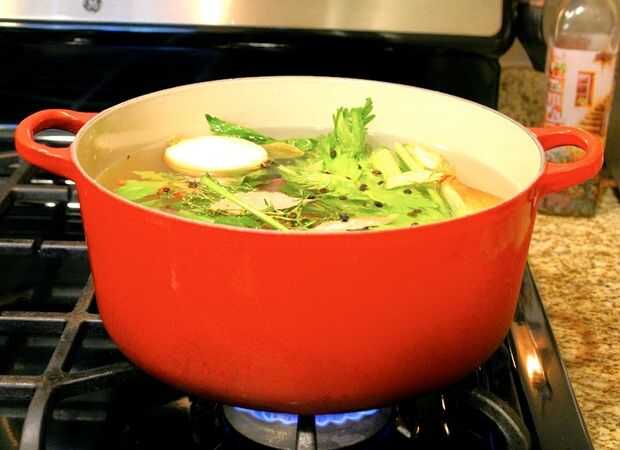 Cómo hacer caldo de pollo casero: receta de caldo de pollo, acentuado con romero fresco y tomillo.