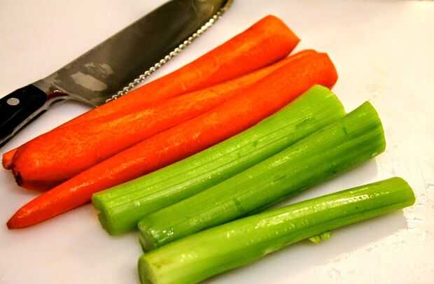 Mientras está hirviendo pollo, preparar las verduras: