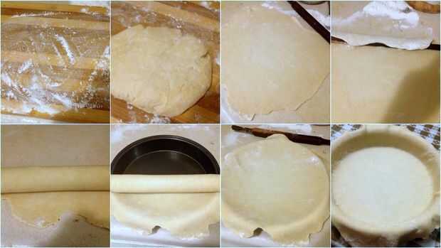 3. transferir la masa enrollada a la tartera de 9 pulgadas.