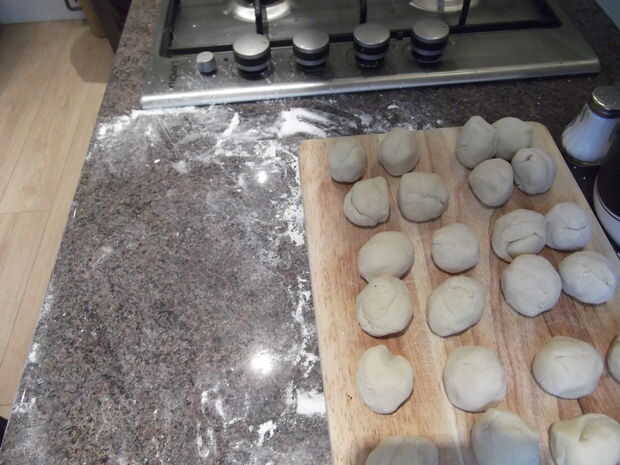 Pictures 1-6. Girar la masa en 24 bolas idénticas de masa.