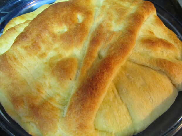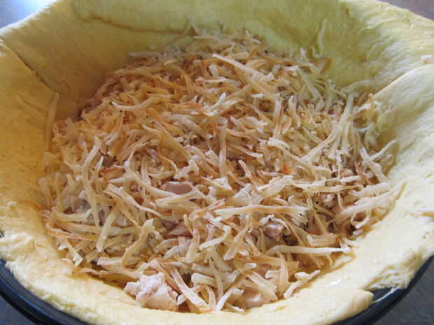 1. primera cubierta de la parte inferior de la bandeja con la media luna rollos.