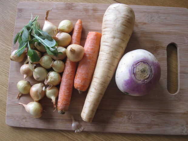1/2 taza mitad bebé o nabos pequeños, o en cuartos si la gran
