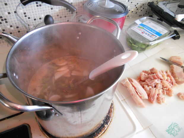 - Pechugas de pollo y los muslos, cortadas en tamaños de bocado (puede utilizar tanto como puede caber en tu olla de sopa)