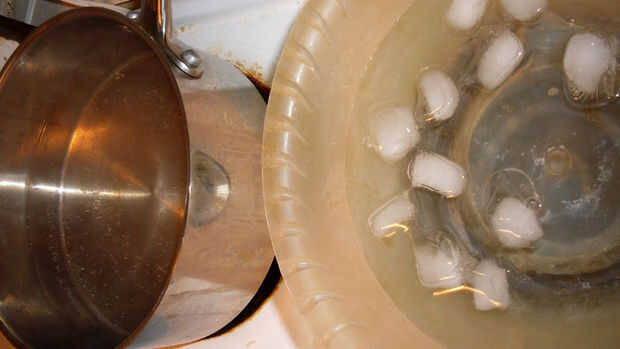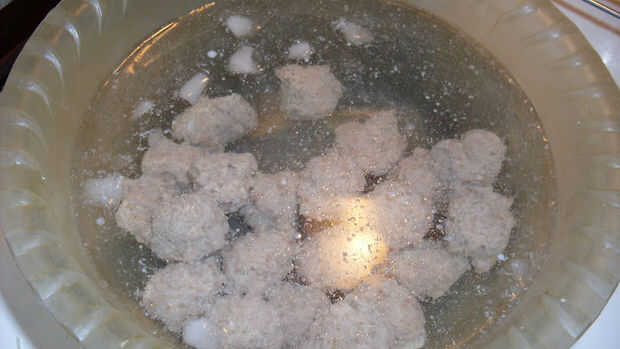Agua y hielo es asegurarse de que una vez albóndigas son enfriadas y almacenadas juntos, que no peguen uno al otro.