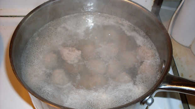 Sacar albóndigas refrescados con la espumadera y almacenar en un recipiente.