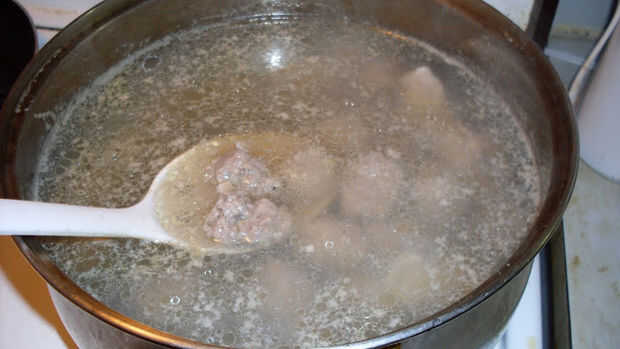 Añadir albóndigas y ajustar a gusto con sal y pimienta blanca