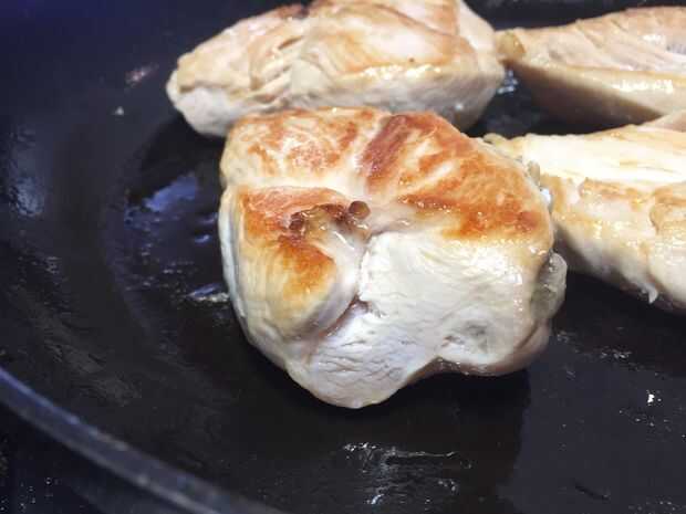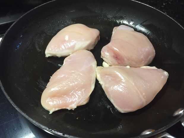 En un calor de la cacerola poco aceite a fuego medio alto luego coloque el pollo en la cacerola y cocinar cada lado durante 2-3 minutos dorar por ambos lados. Por dorar de ambos lados a fuego alto el pollo permanece húmedo cuando caza furtiva en la salsa teriyaki.