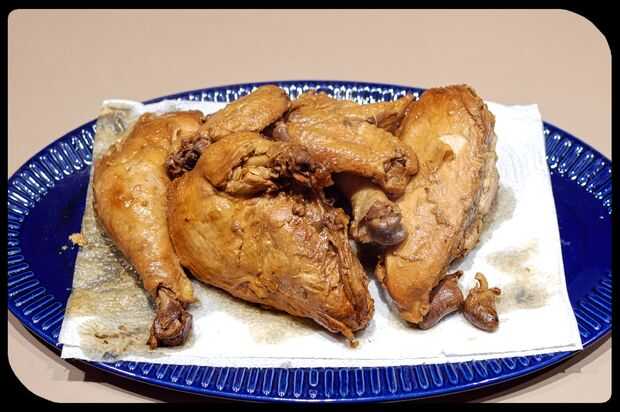 tengo un pollo, una de las tres.  Estas aves eran orgánicas cultivados de amigo que mi esposa y yo recibido como regalos.  Después de asar el primer pájaro, descubrimos que eran bastante duras.  Si tienes un pájaro demasiado duro asar, guisar es nece