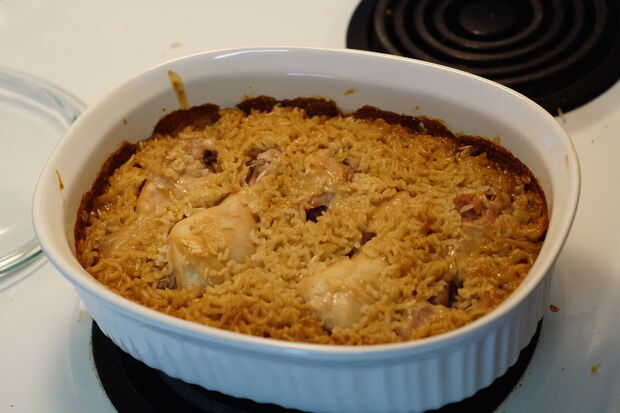 Hoy me gustaría compartir con ustedes Cómo hice un cazuela de arroz pollo y muslo al horno!