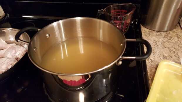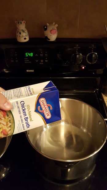 En la olla vierta 4 tazas de pollo y 4 tazas de agua, la olla a fuego medio