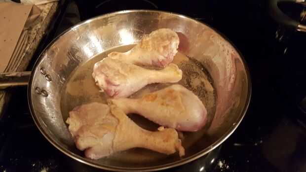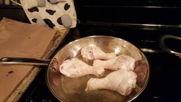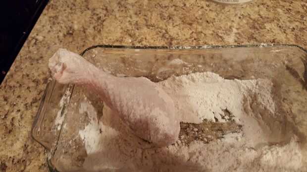 Una vez que el pollo ha sido ligeramente enharinado, y el aceite está a temperatura, es el momento de conseguir peligroso!