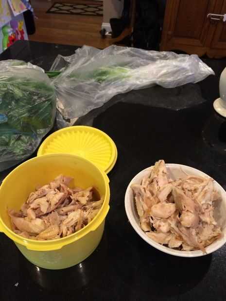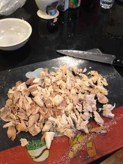 Comenzar con el pollo. Cuando yo estoy cocinando para los dos corte el pollo por la mitad y usar la mitad de esta receta y guardar la otra mitad para el mañana por la noche. Picar el pollo en trozos pequeños,