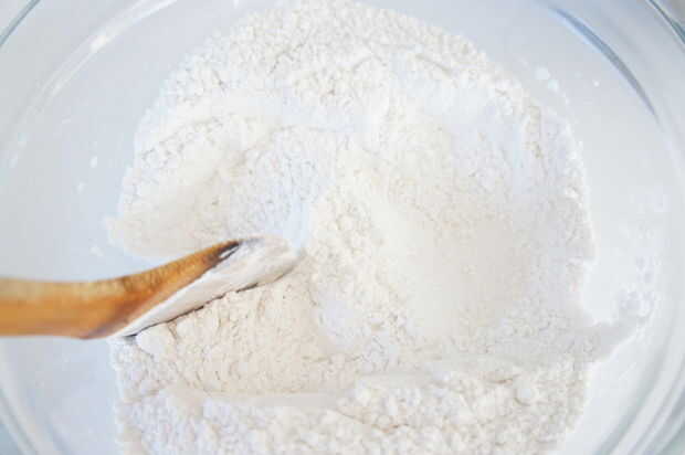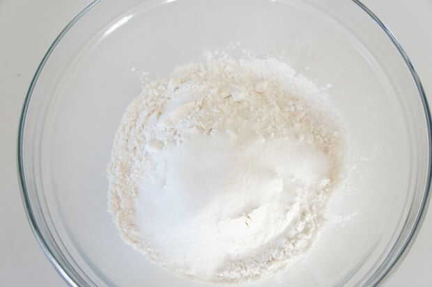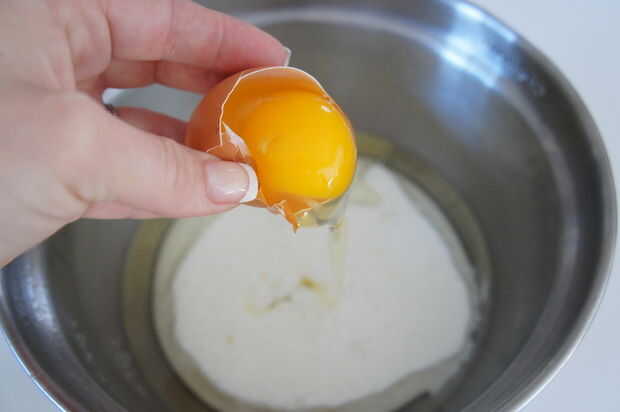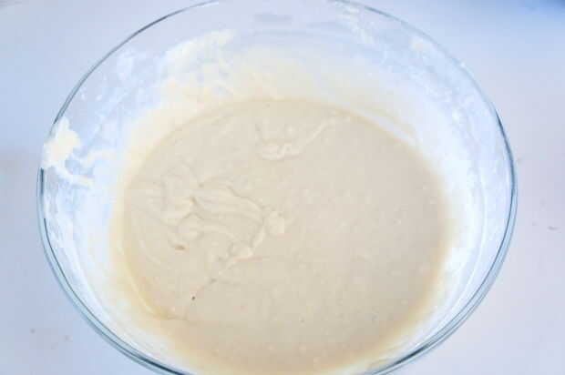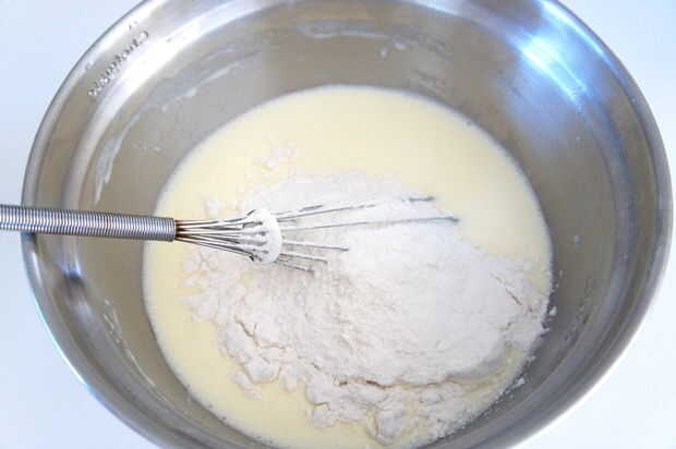 Combinar la harina, azúcar, polvo de hornear y sal en un tazón. Batir la mantequilla, aceite vegetal y huevos bien. Poco a poco Vierta la mezcla de leche en la mezcla seca. Revolver hasta que la mezcla se mezcla casi. Habrá algunos grumos en la mezcla.