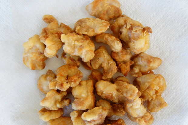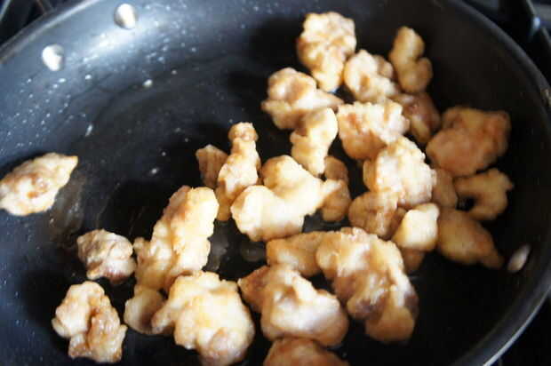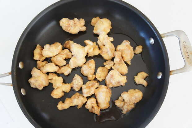 1 bolsa mandarina pollo de Trader Joe's - (esta receta utiliza sólo el pollo!) Desechar o guardar el paquete de la salsa para otra comida. También puede utilizar su receta de pollo frito favorito