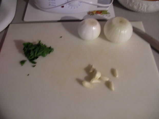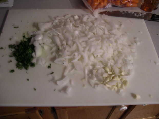la receta requiere 4 pechugas de pollo, pero solo tuve 2. Me gusta usar baby-corte las zanahorias en lugar de recortar los normales, es simplemente más rápido. También usé copos de cilantro en lugar de las cosas frescas porque la tienda de por aquí es siempre hacia fuera. Realmente se pueden sustituir la cebolla, ajo, perejil, cilantro y palos de canela con escamas y polvo, he hecho cuando van a acampar y el sabor es casi el mismo. También he usado cordero en vez de pollo y resultó muy bien, aunque un poco grasosos.