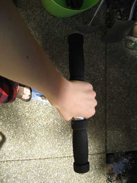 Es difícil montar una moto con una mano, un objeto largo de balanceo en la otra mano y scoot alrededor con un pie y freno. Personalmente encontré la mejor manera de hacerlo era sujetar el centro de la manija con la mano izquierda, sostenga el mazo en la otra mano empuje junto con mi pie derecho. Soy correcta entregado por lo que las prosas probablemente será lo contrario si usted dejó entregados.