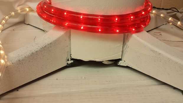 El soporte giratorio del árbol de Navidad tiene cuatro patas, que las cuatro patas se redondearon para que montaje del tubo en el soporte fue paciencia. Medimos la anchura y altura necesitaba una corte 4 muescas el tubo sentarse en el soporte. Error en el lado de la precaución y corte las muescas pequeñas por lo cual tendríamos un ajuste ceñido. Tomó un total de 2 ajustes después de la inicial, para obtener el tamaño exacto que querían. Tomando nuestro tiempo para obtener un ajuste exacto es esencial para la construcción de una base sólida.
