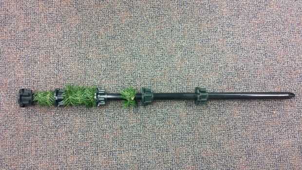 Se utilizó el interior poste de un viejo árbol de Navidad artificial. La pieza superior tuvo que ser despojado de todas las ramas y guita envuelto alrededor de esto. Esto tarda un poco más que usted podría pensar y hace un lío. Una vez simplificada la pieza superior es una varilla pequeña.