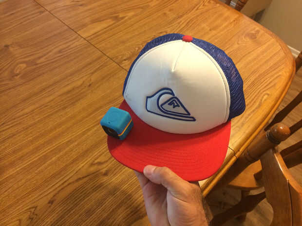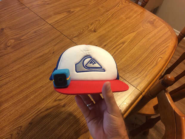 El cubo encaja bien en la factura de un sombrero. tener cabeza montado mantiene la cámara estable. Para el uso diario como el zoo, aeropuertos, eventos de baja actividad esto funciona muy bien y es mucho menos molesto una tradicional GoPro en una cabeza de correa. el sombrero tiene simplemente una arandela cosida en él.