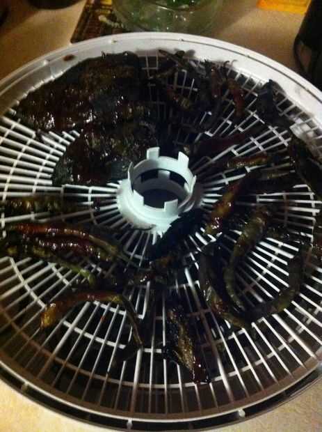 Pimientos picantes se secará sobre su propio en una ventana, pero pimiento carnoso necesito ayuda! He usado el horno de 170F pero utiliza demasiada energía y 170 es un poco demasiado caliente, pero trabajo si eso es todo lo que tengan. Invertí en un deshidratador el año pasado y se ha convertido en uno de mis aparatos preferidos (clavados por nuestro sellador de vacío). Disponerlos en bandejas y fijar a la temperatura a 125F y tardará unos días. Usted quiere asegurarse de que ninguna parte de la pimienta está todavía blanda.