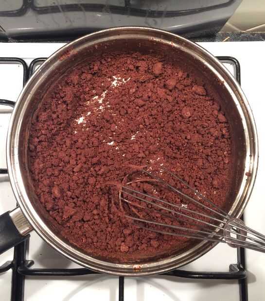 Batir de inmediato, obtener en los lados de la olla. Continuar por un par de minutos para asegurarse de que el chocolate se incorpore completamente.
