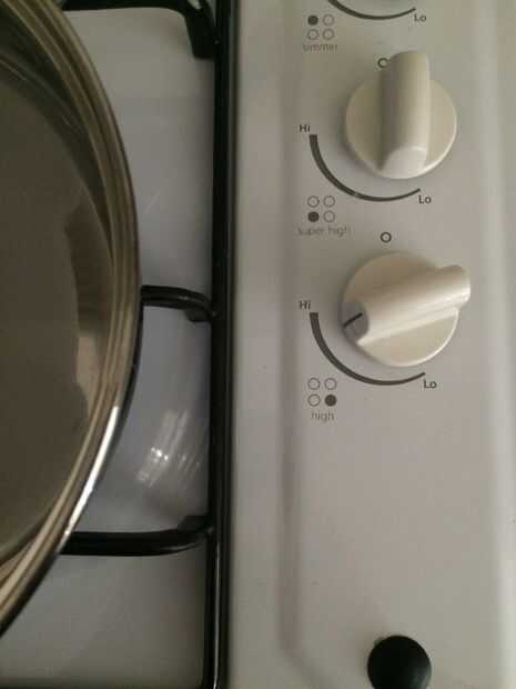 Conjunto que la cacerola sobre fuego alto y sólo deja hacer su cosa. Puede agitar la cacerola para comenzarla, pero no revolver!