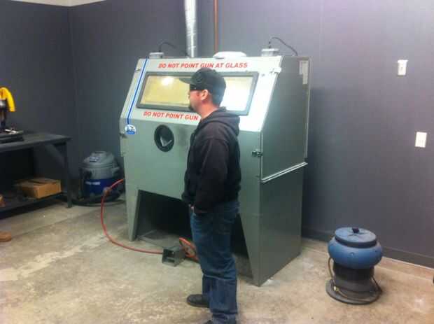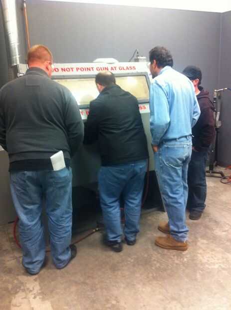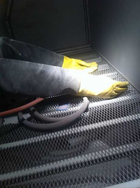 Nuestra clase turnaban con el gabinete para limpiar nuestras piezas de metal de la muestra.