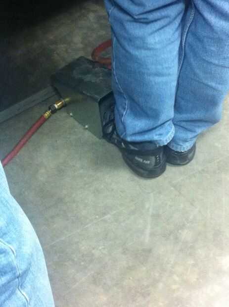 Activación de la explosión de gabinete se controla con un interruptor de pie. Presiónelo y dispara a los medios de comunicación fuera de la pistola.