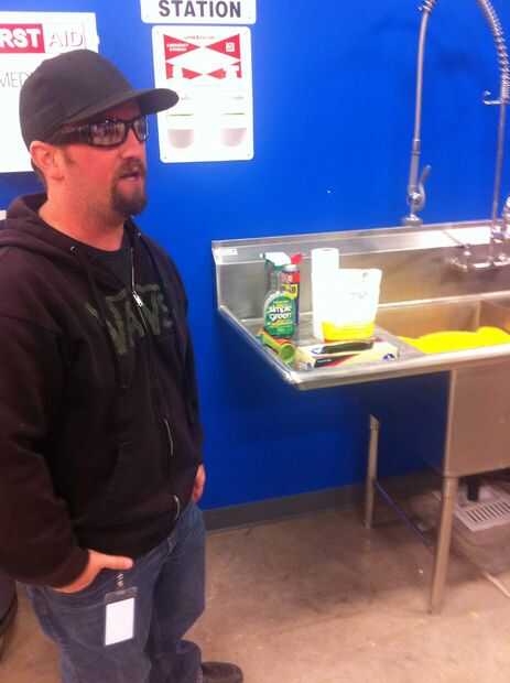 En el fregadero, nuestro instructor nos enseñó a mezclar agua y TSP. Lavar nuestras piezas en la solución y les enjuagar luego.