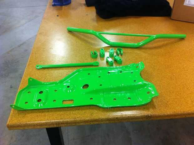quería aprender la capa del polvo que podría utilizar el sistema para algunos proyectos. Mis primeros proyectos era algunas partes de mi cuatro hijas. Hice las barras de la manija, placa de la resbalón y algunas otras piezas pequeñas en el mismo color verde Kawasaki. Muy contento con los resultados!